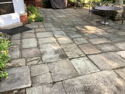 This walkway had been cleaned fairly recently and therefore cleaned up nicely. The owner shared with me that he was considering ripping up and replacing the walkway as it looked so bad. He decided to keep it after the cleaning. It is good to have a maintenance cleaning in high-traffic areas before blue stone turns black in order to maximize its lifespan.